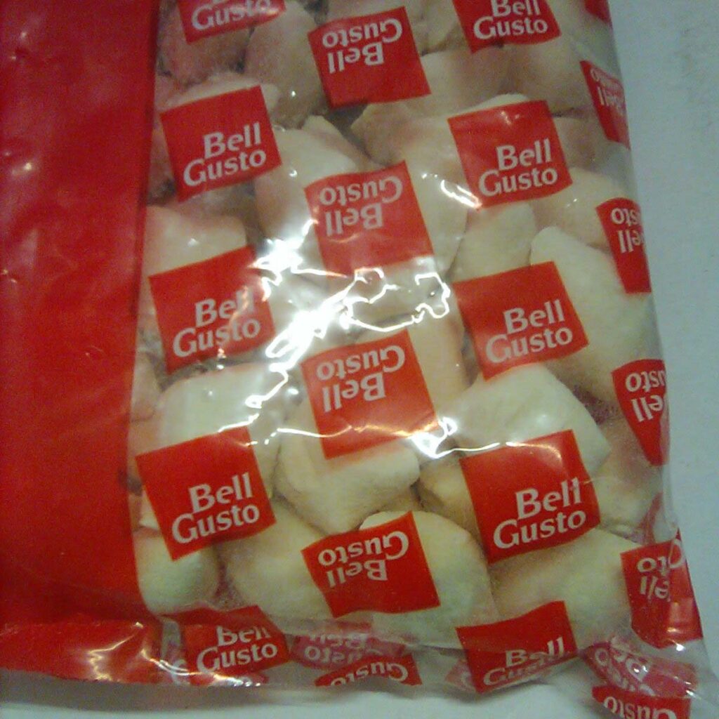 Kopytka Bell Gusto to miękkie, delikatne kluski ziemniaczane, które oferowane są w formie głęboko mrożonej. Produkt dostępny w opakowaniach jednostkowych po 2,5 kg, a karton zawiera 4 takie opakowania – co daje 10 kg całkowitej wagi produktu.