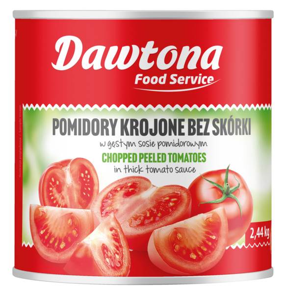 Pomidory krojone bez skóry marki Dawtona to wysokiej jakości produkt powstały z dojrzałych, starannie wyselekcjonowanych pomidorów, poddanych procesowi obierania i cięcia. Zatopione w naturalnym soku pomidorowym, oferują intensywny smak i aromat, który doskonale wzbogaca dania kuchni polskiej i śródziemnomorskiej. Duży format puszki – 2440 g brutto, 1465 g netto po odsączeniu – czyni ten produkt idealnym rozwiązaniem do zastosowań w kuchni zbiorowej lub przy przygotowywaniu większych ilości potraw.