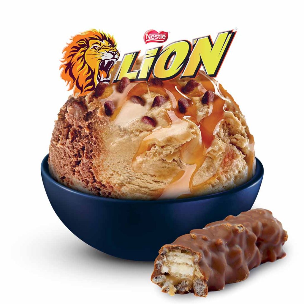Lody w kuwecie Lion marki Nestlé to wyrazisty deser inspirowany popularnym batonem Lion. Kremowa baza lodowa została połączona z charakterystycznymi nutami karmelu i czekolady oraz chrupiącymi elementami, które nadają deserowi intensywny smak i zróżnicowaną teksturę.