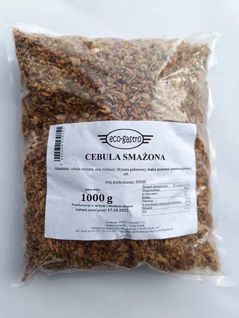 Produkt pochodzi z oferty Floramex – producenta znanego z szerokiego asortymentu przypraw i dodatków kulinarnych, spełniających wysokie standardy jakości. Cebula smażona doskonale sprawdza się jako uniwersalny dodatek do dań na ciepło i na zimno. Może być stosowana jako posypka do burgerów, hot dogów, zapiekanek i sałatek, a także jako składnik farszów, sosów, potraw mięsnych i dań kuchni fast casual.