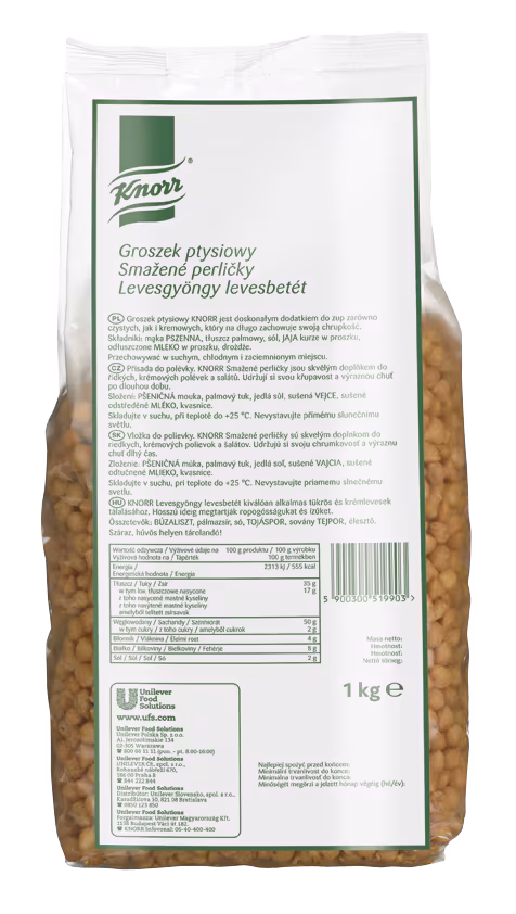 Opakowanie 4 × 1000 g zapewnia wysoką wydajność i wygodę użytkowania przy regularnym przygotowywaniu potraw. Stała jakość oraz powtarzalność produktu sprawiają, że groszek ptysiowy Knorr jest praktycznym rozwiązaniem do codziennego uzupełniania zup i kremów.