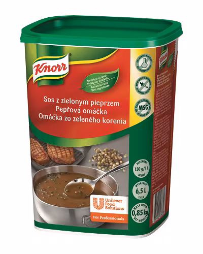 Sos zielony z pieprzem Knorr to wyrazisty sos o kremowej konsystencji, łączący delikatność śmietankowej bazy z charakterystyczną, lekko pikantną nutą zielonego pieprzu. Starannie opracowana receptura zapewnia zbalansowany smak, który podkreśla aromat potraw, nie przytłaczając ich naturalnego charakteru.