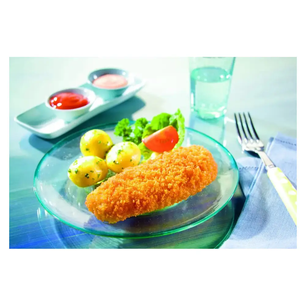 Filety rybne w chrupiącej panierce FRoSTA to mrożony produkt przygotowany z wysokiej jakości filetów rybnych, otoczonych złocistą, wyraźnie chrupiącą panierką. Starannie dobrana receptura zapewnia delikatne, soczyste wnętrze ryby oraz atrakcyjną strukturę po obróbce termicznej.
