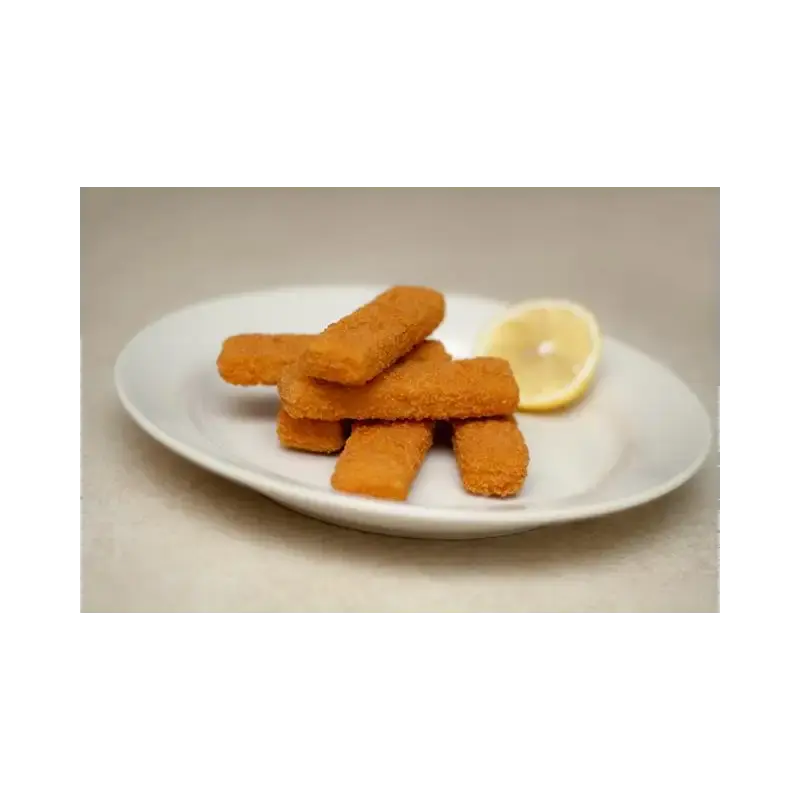 Paluszki rybne z fileta FRoSTA to mrożony produkt przygotowany z pełnowartościowych filetów rybnych, pokrytych równomierną, złocistą panierką. Charakteryzują się delikatnym, soczystym wnętrzem oraz chrupiącą strukturą po obróbce termicznej, co zapewnia powtarzalną jakość i atrakcyjny wygląd gotowych dań.