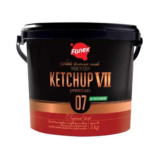 Fanex Ketchup nr VII Premium w opakowaniu 5000 g to klasyczny, intensywnie pomidorowy sos o gładkiej konsystencji i bogatym aromacie, który od lat cieszy się uznaniem jako uniwersalny dodatek do wielu dań. Produkt powstaje na bazie starannie wyselekcjonowanych pomidorów i aromatycznych przypraw, co daje charakterystyczny smak, który podkreśla aromat potraw, nie dominując ich naturalnych walorów. Ketchup nr VII to jeden z najbardziej rozpoznawalnych produktów marki Fanex – sprawdzony smak, który z powodzeniem łączy się z różnorodnymi kompozycjami kulinarnymi.