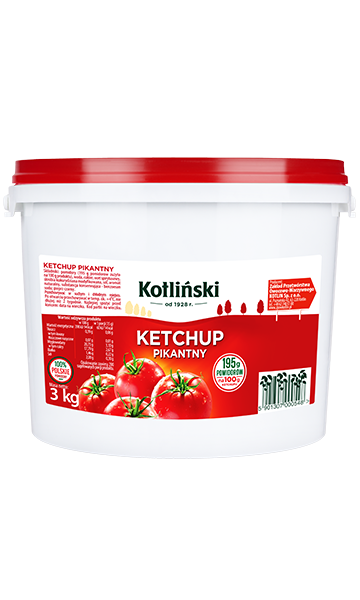 Produkt powstaje według sprawdzonej receptury, będącej efektem wieloletniego doświadczenia producenta Kotlin. Ketchup pikantny zachowuje stabilną strukturę i jest łatwy w dozowaniu, co ułatwia jego codzienne użytkowanie. Duże opakowanie 3000 g zapewnia wysoką wydajność i komfort pracy przy intensywnym wykorzystaniu.