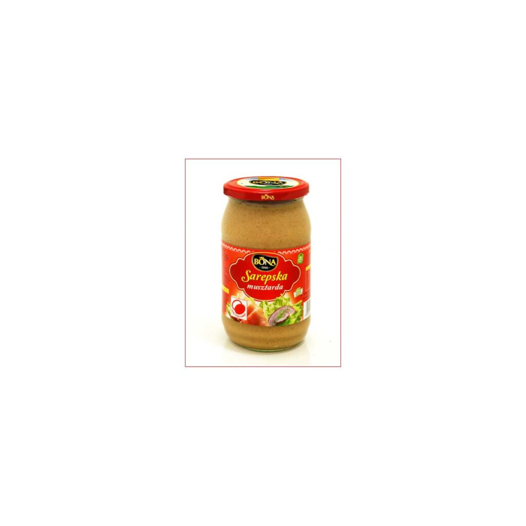 Musztarda Sarepska BONA to klasyczny, intensywny smak musztardy o lekko pikantnym profilu, wyróżniający się wyraźną strukturą — z widocznymi ziarnami gorczycy oraz gęstą konsystencją. Produkt w wersji gastronomicznej oferowany jest w zestawie sześciu słoików po 800 g każdy, co daje łącznie 4,8 kg gotowego produktu dla kuchni wymagających większych ilości. Charakterystyczny smak musztardy sarepskiej doskonale sprawdza się jako dodatek do wędlin, grillowanych mięs, hot-dogów, a także jako składnik marynat, dressingów czy sosów.