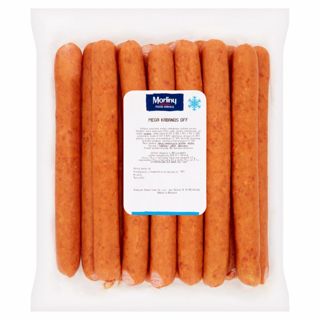 Mega kabanos do hot doga marki Morliny to wyrazisty produkt mięsny stworzony z myślą o efektownych, sycących kompozycjach hot dogowych. Wyróżnia się dużym formatem, intensywnym smakiem oraz soczystą strukturą, która doskonale sprawdza się po podgrzaniu.
